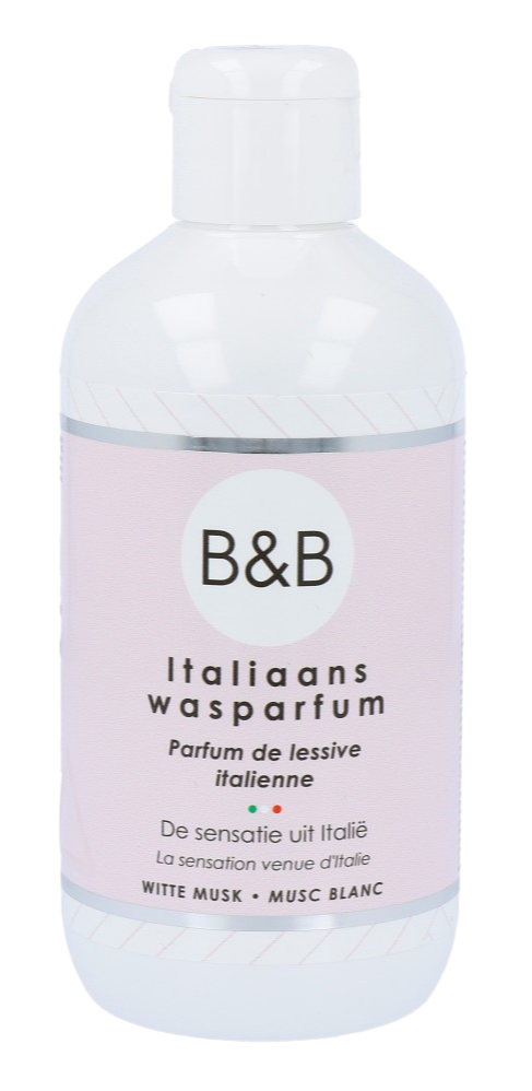 B&B Italiaans Wasparfum Witte Musk is de perfecte toevoeging aan uw wasroutine. Deze geurbooster geeft uw wasgoed de heerlijke bloemige geur van witte musk en zorgt ervoor dat uw kleding, handdoeken en andere wasgoed fris en schoon ruiken. Nooit meer last van nare geuren in